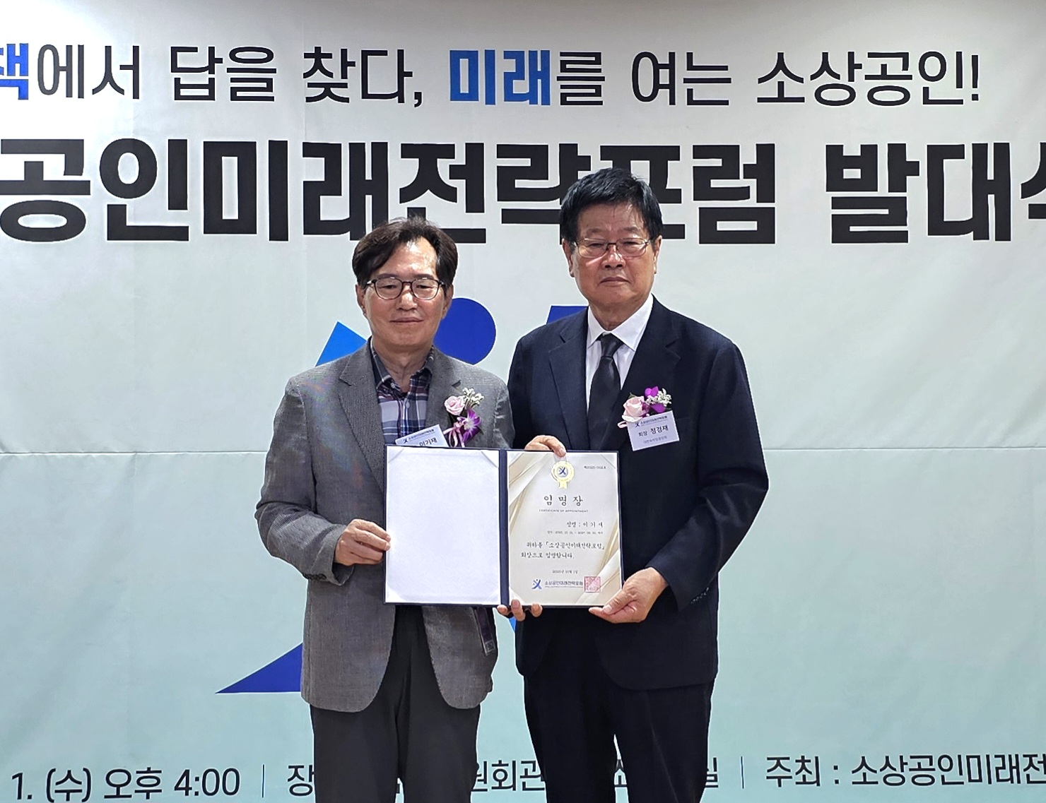 저희 연합회 이기재회장님이 소상공인미래전략포럼의 회장에 임명 되셨으며,